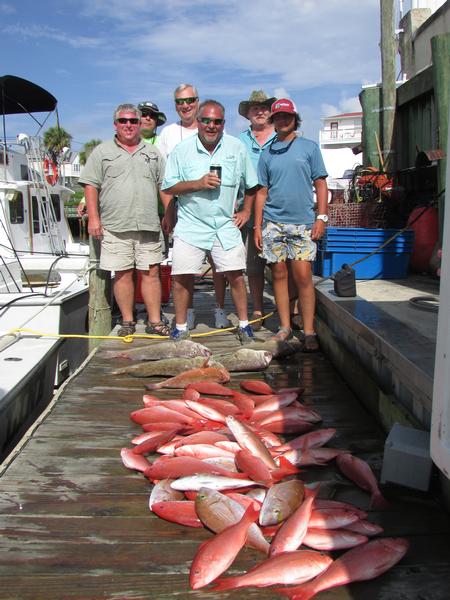 Fishing aboard the "Bottom Line" were Justin & Hunter Davis, Wayne & Curtis Carter, Autry Brooks and Ashley Brock.